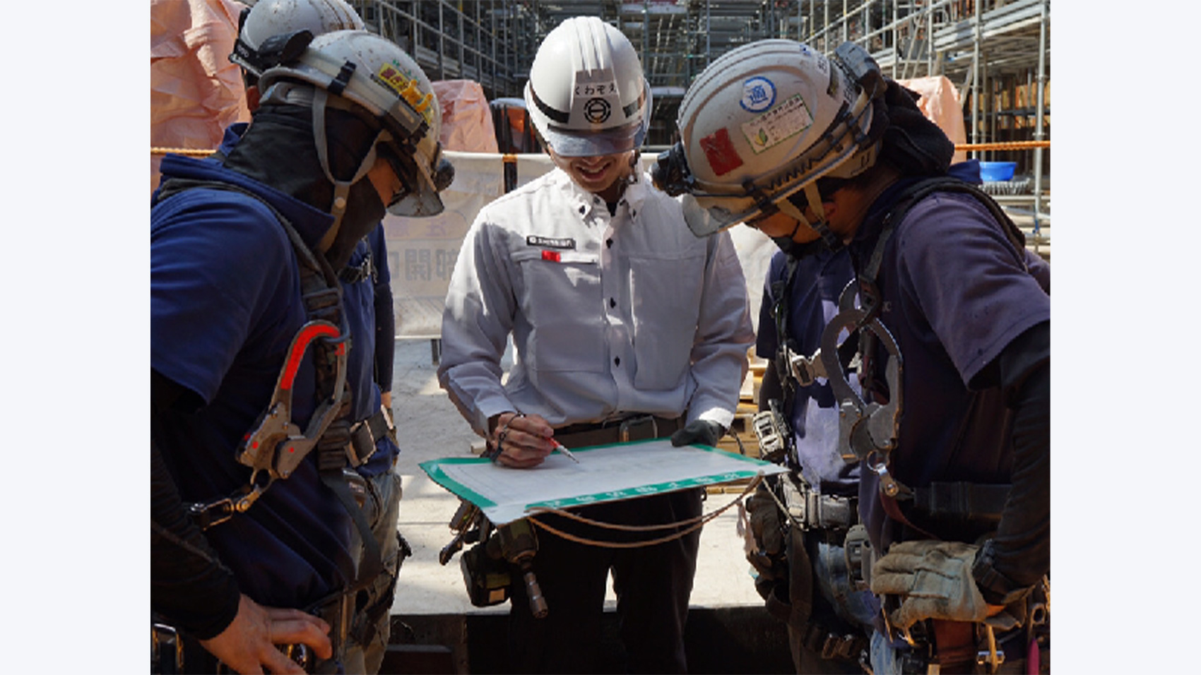 現場で作業をしていると、どれだけ自身で注意していたとしても見落としている点や気づけない点が必ず出てきてしまいます。ですので、作業をする際には一人作業はせずに必ず複数人で作業をし、お互いに声をかけあうようにこころがけています。
