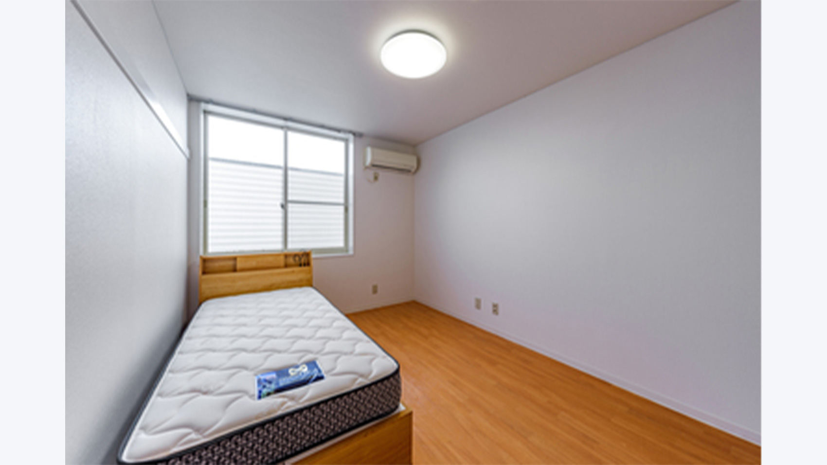 市川寮にもベッドとマットレスが備え付けられています。窓から自然光が入るので、室内は明るくて快適ですね。