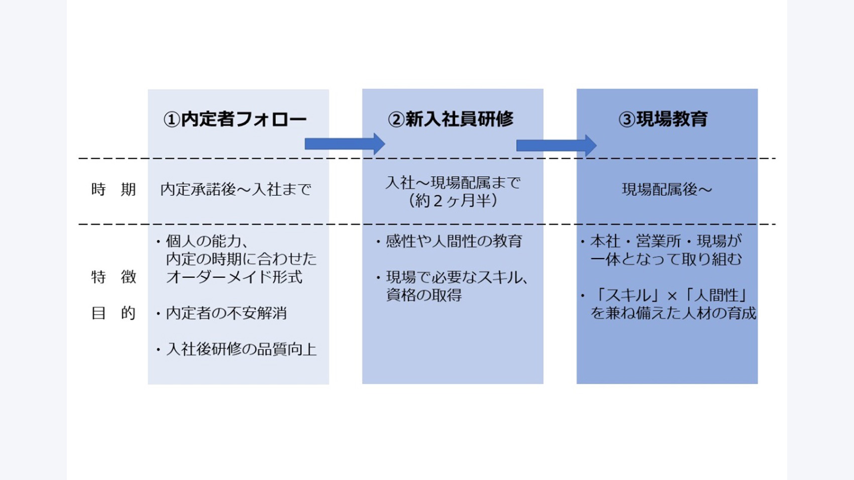 また、現場の人間にとって現場の仕事が営業なのでこの人なら任せられる、またこの人にお願いしたいとお客様からリピートされるような人材を育成していきたいと考えております。