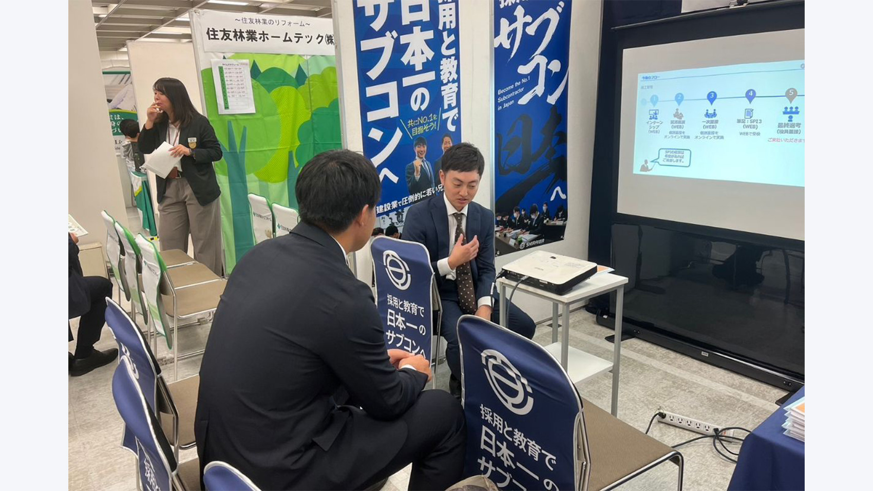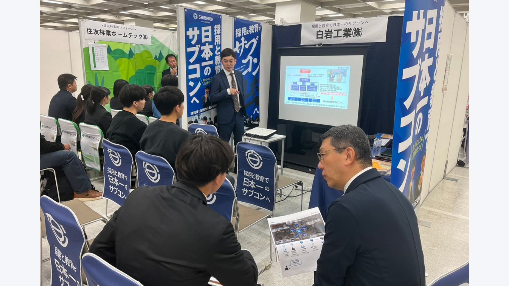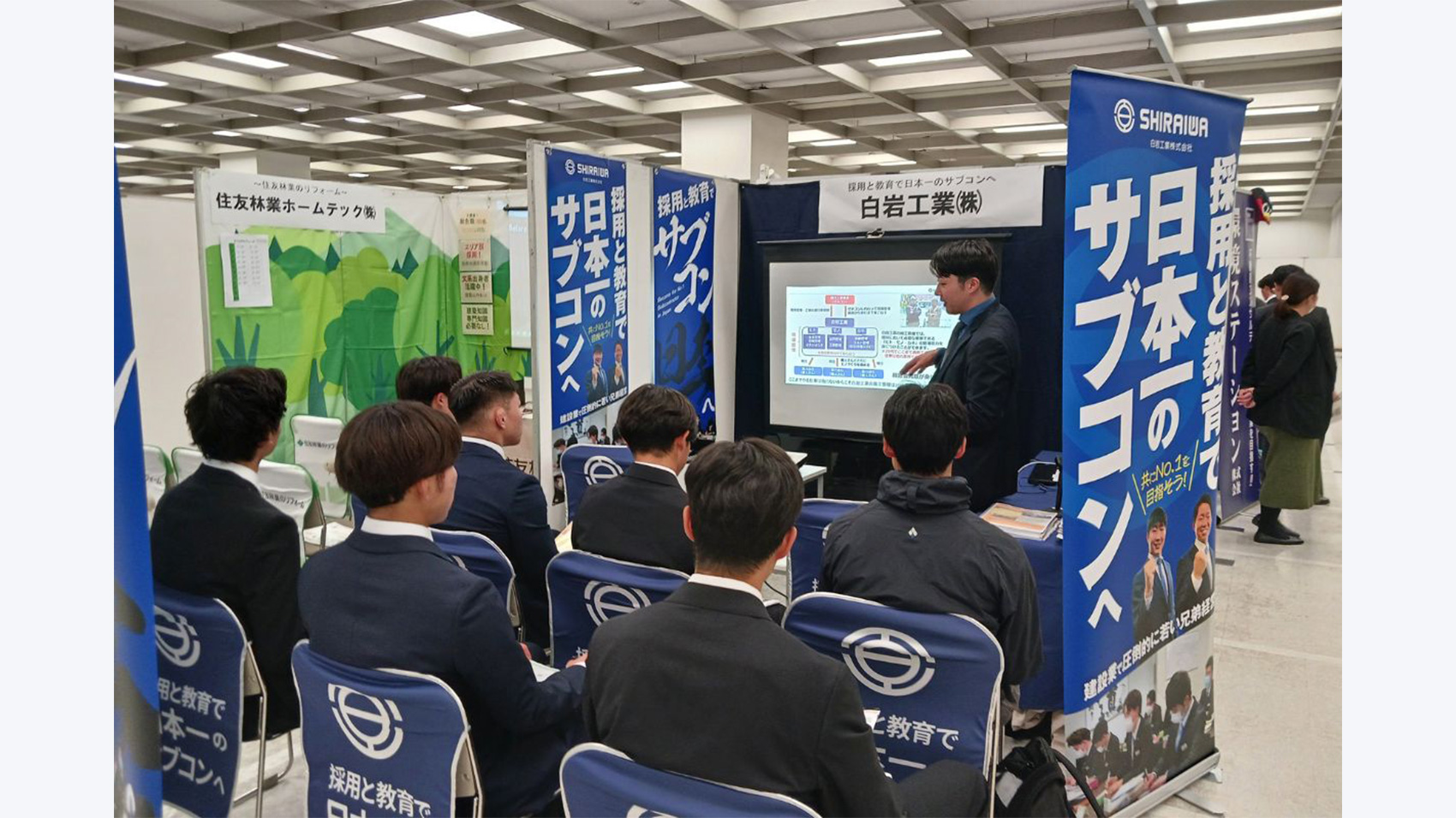 今回の合同説明会は体育会学生対象のイベントということもあり、「採用と教育で日本一のサブコンへ」という当社の採用コンセプトや求める人物像である「20代で圧倒的成長」に共感を抱いてくれる成長意欲の強い学生さんが多い印象でした!