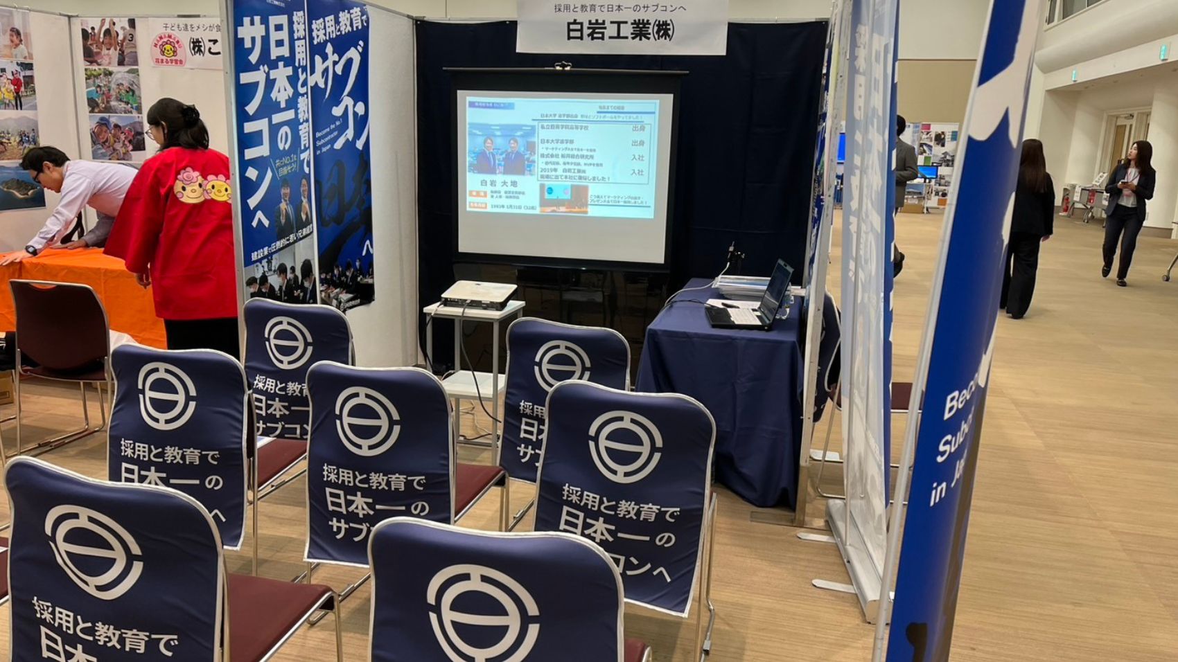 そのなかで会社の説明として、「採用と教育で日本一のサブコン」を目指す熱量や方針、「20代で圧倒的に成長できる」環境についてお伝えしています。(学生さんにとって白岩工業の説明が就職活動においての学びを得る時間となるようにしています!)