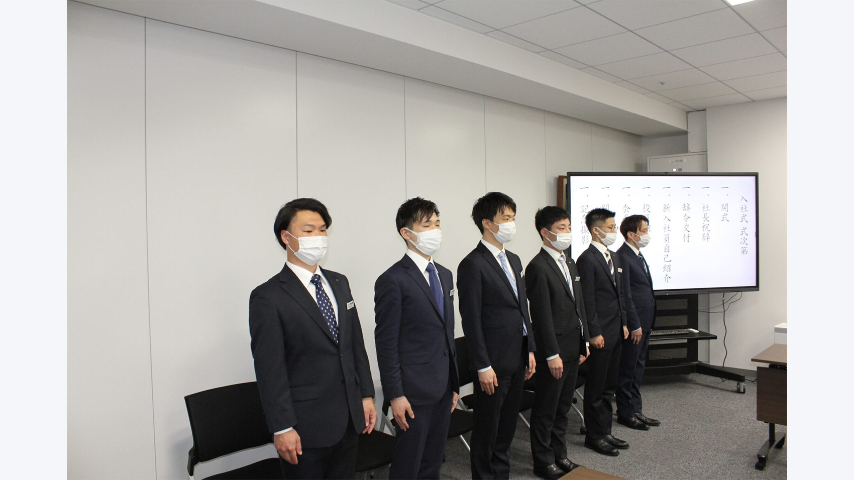 入社式は社長の祝辞から始まり、一人ひとり名前が呼ばれ、入社辞令が授与されました。