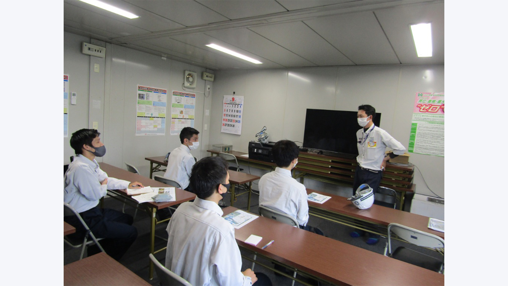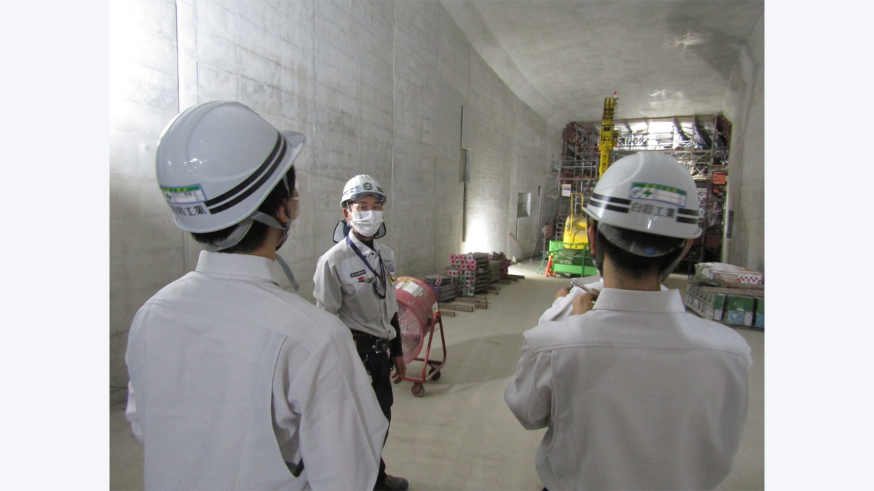 白岩工業では、内定者フォローの一環として現場見学会を実施しています。実際の作業現場を訪れ、そこで白岩工業の社員がどのように働いているのかを見学し、施工管理という仕事のイメージを掴んでもらう目的があります。